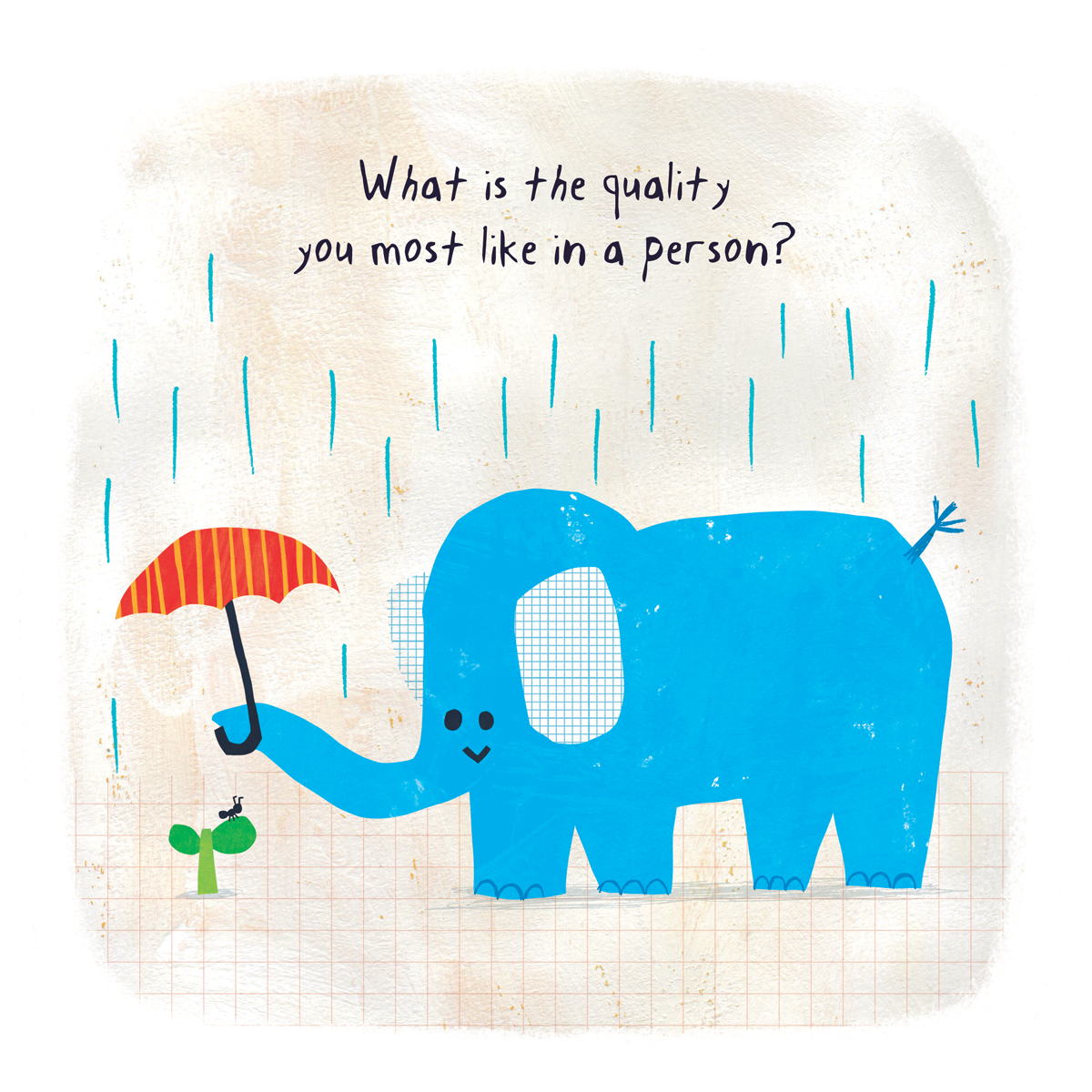 In our “Question & Illustration” newsletter inspired by the Proust Questionnaire, each month we ask one of our artists to answer three questions about their personality using only illustrations. If you are interested in receiving our Q&I newsletter click here.